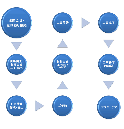 弊社は営業から工事施工・アフターフォローまで一貫して自社により行います。